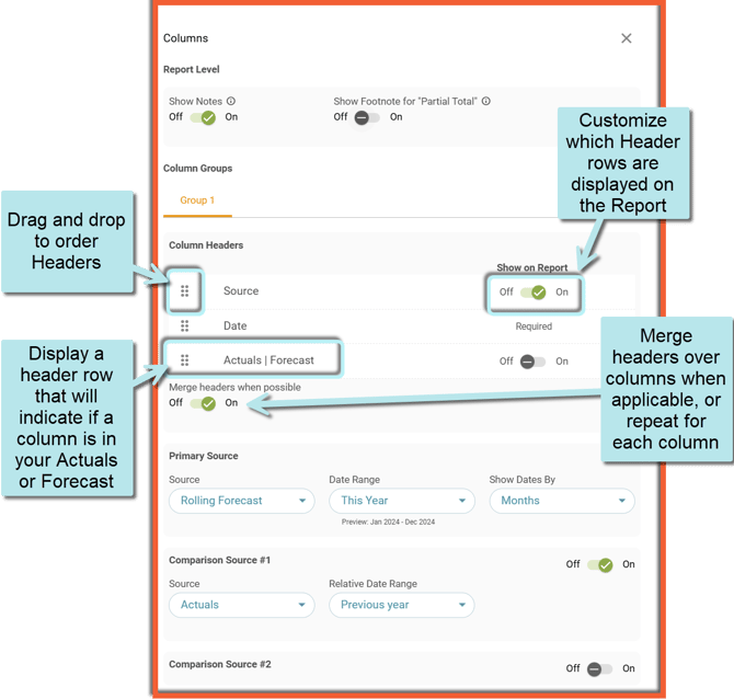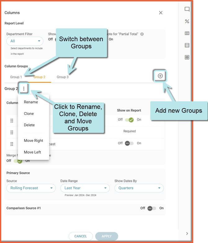 See more details under the Customize Report Multi-Column Groups Help Center article.