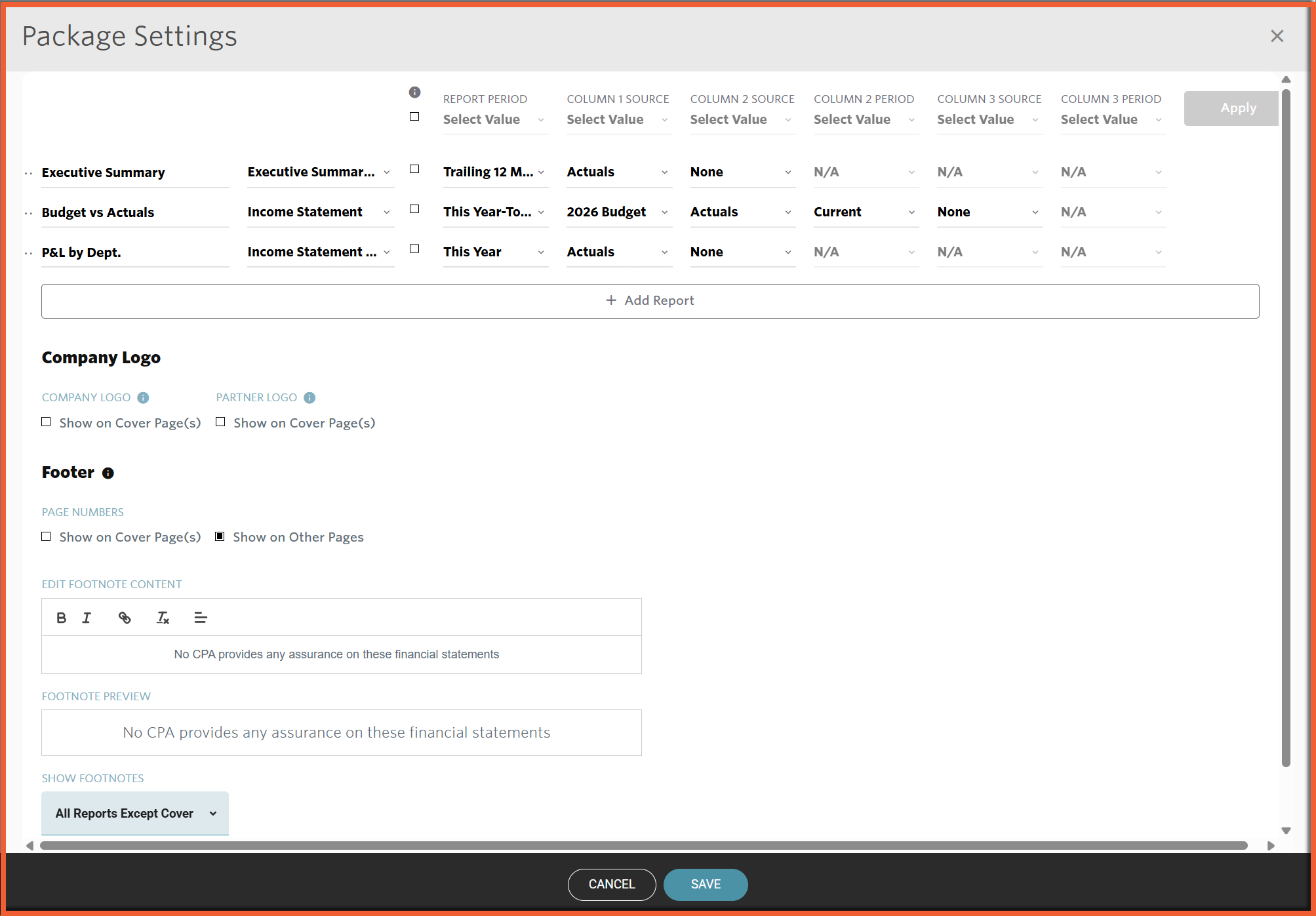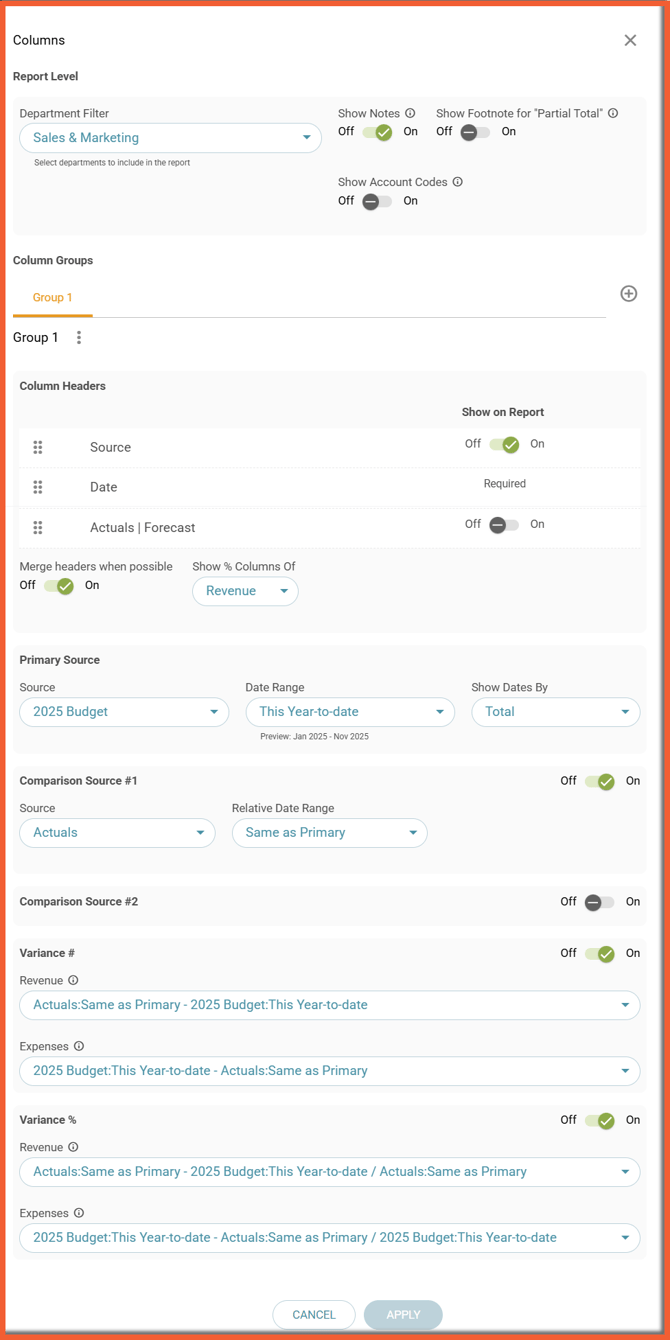 Set up your reports to display the periods, data, and format desired