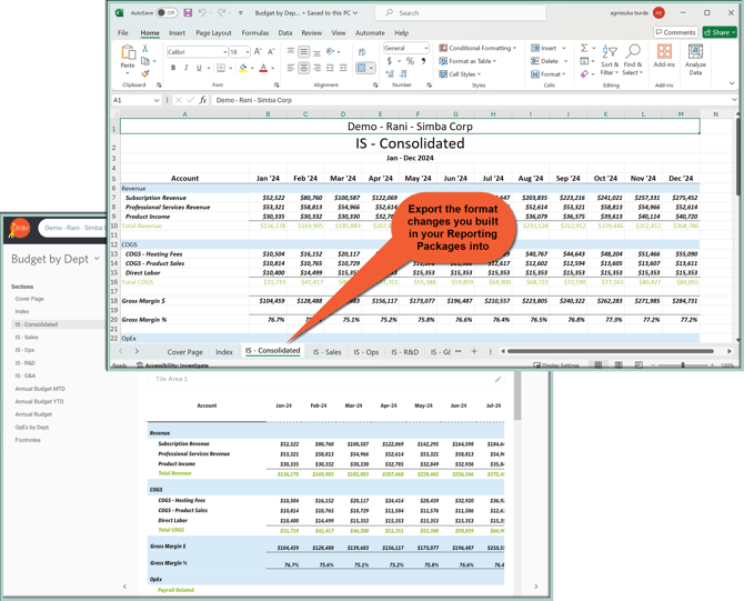 Note, that formatting included under your Report Package in Jirav will be exported to Excel as well: