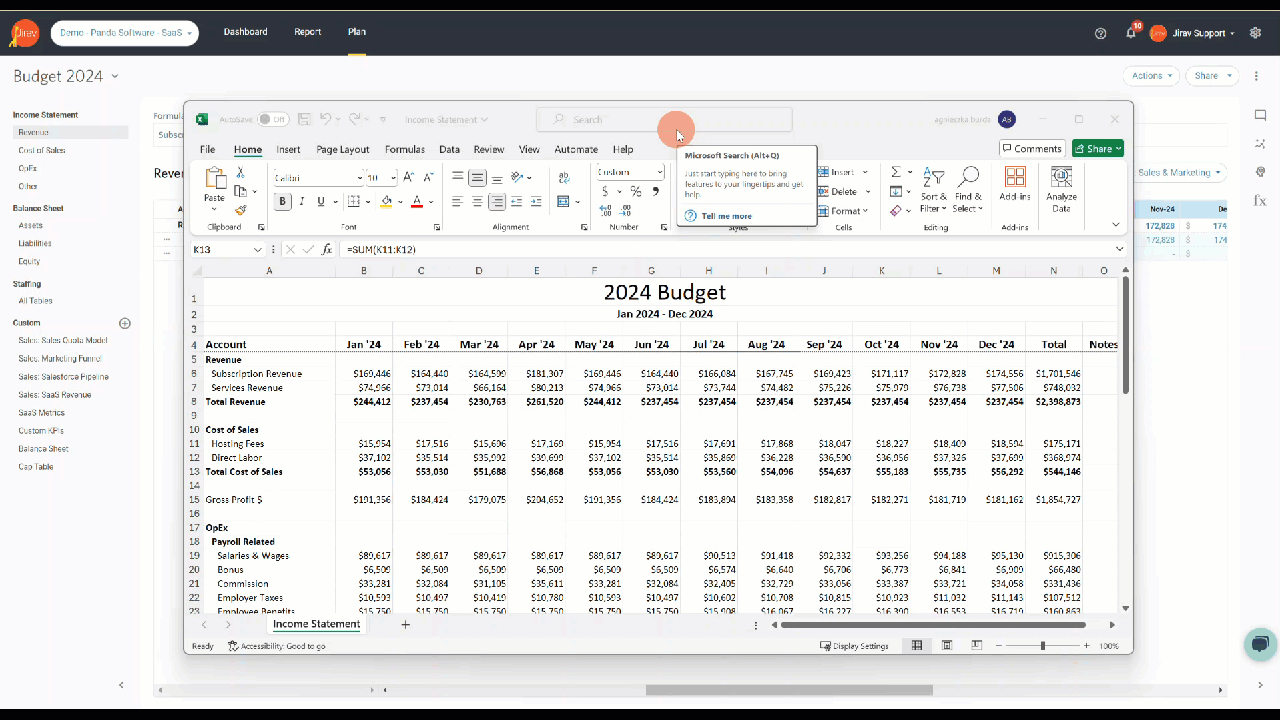 Once your Budget is successfully entered into Jirav you can build your Report that compares Budget vs Actuals.