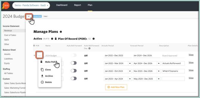 - Once hardcoding your Budget 2024 into Jirav is completed, make this Plan POR