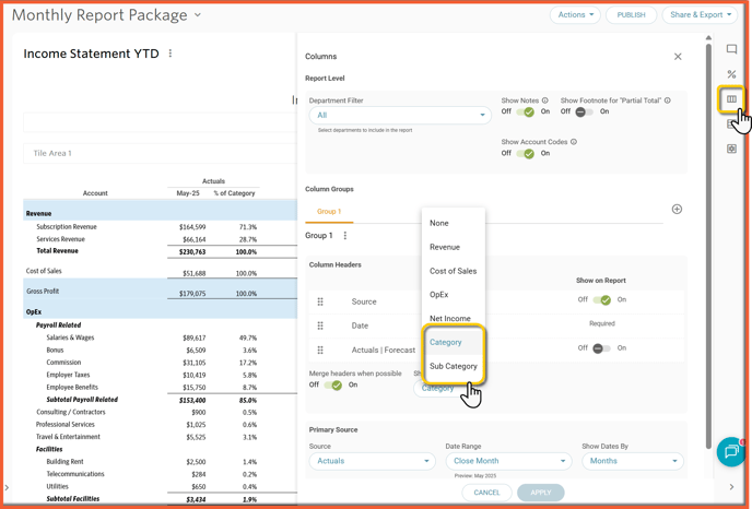 Expand % of Reference Columns on Reports to Category and Sub-Category