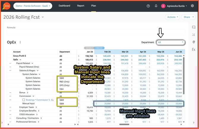 Drill down to Department details & edit Manual Inputs from aggregated Department level